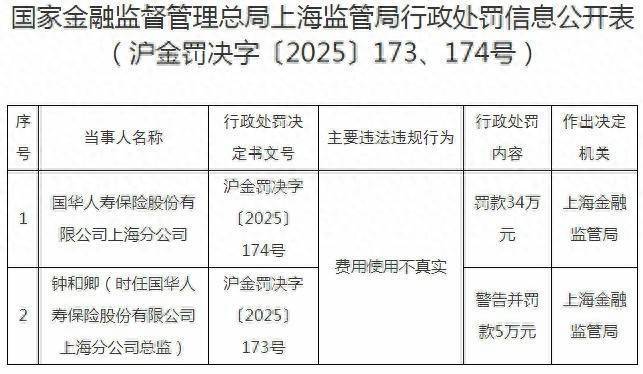 国家金融监督管理总局上海监管局近日披露一则行政处罚信息,因费用使用不真实融金牛,国华人寿保险股份有限公司上海分公司被罚款34万元。